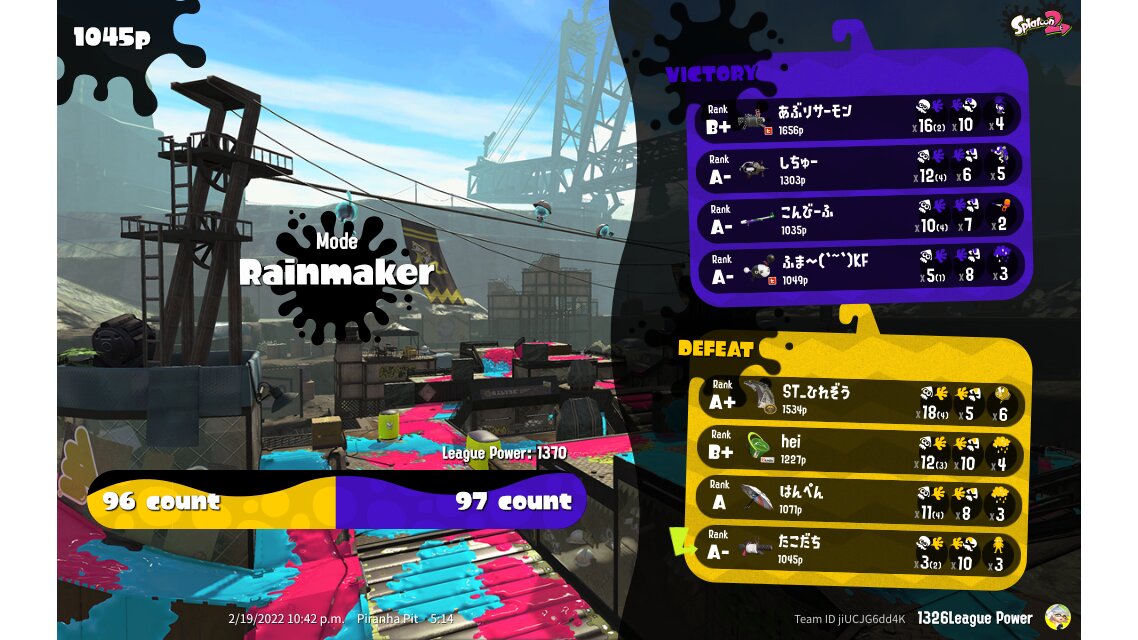 | SplatNet Battle # | 2,765 | ||||||||||||||||||||||||||||||||||||||||||||||