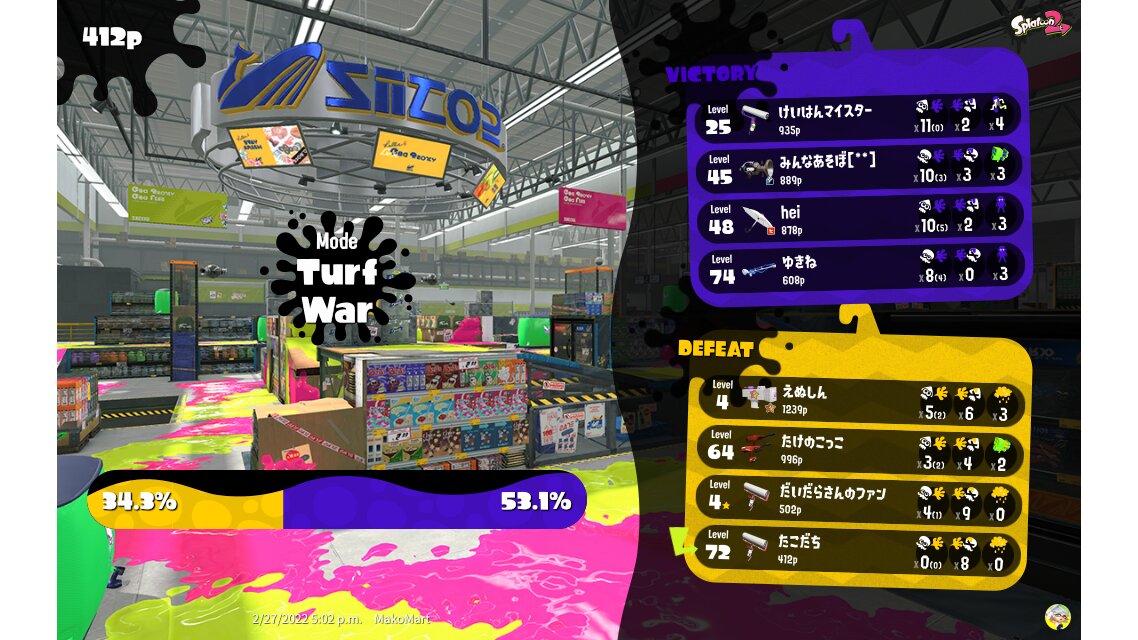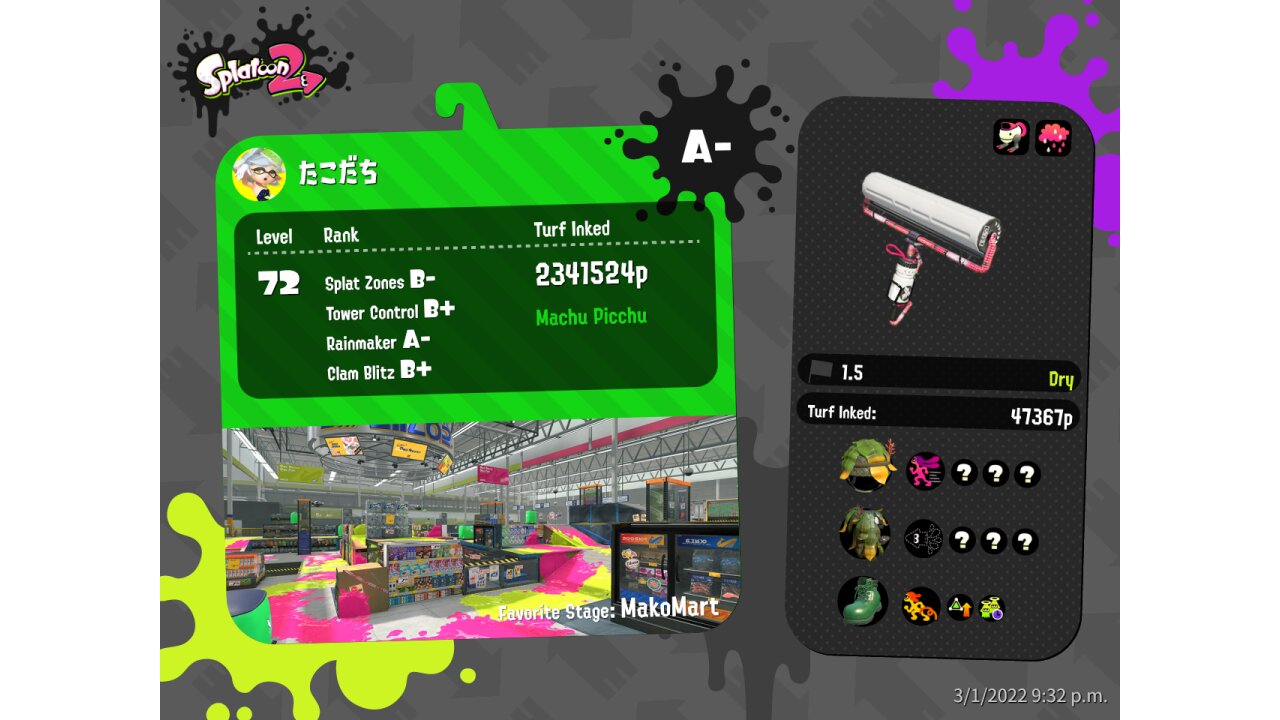 | Mode | Turf War - Regular Battle | ||||||||||||||||||||||||||||||||||