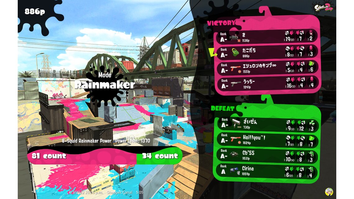 | SplatNet Battle # | 2,913 | ||||||||||||||||||||||||||||||||||||||||||||||
