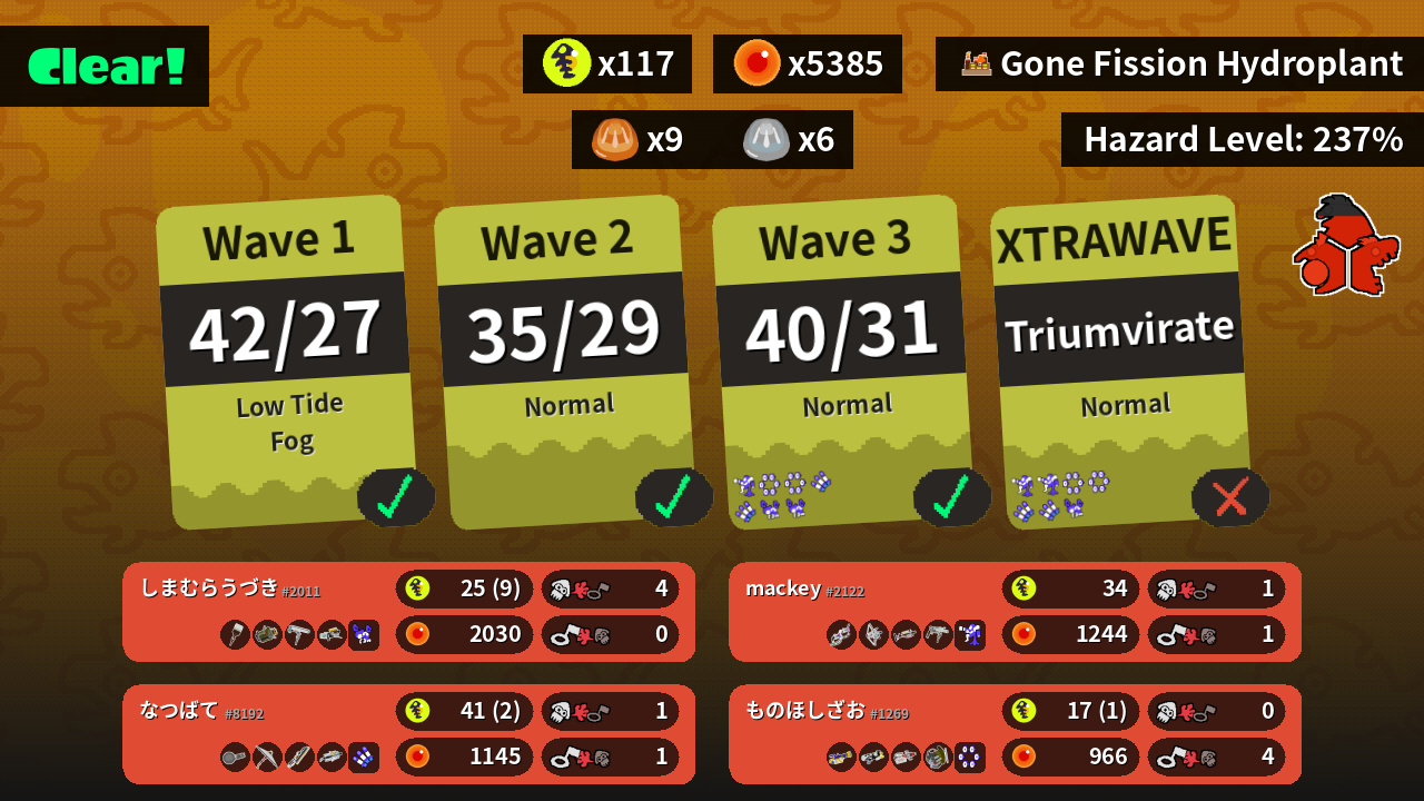 Boss Salmonid | 26 | 19 | 27 | 13 |