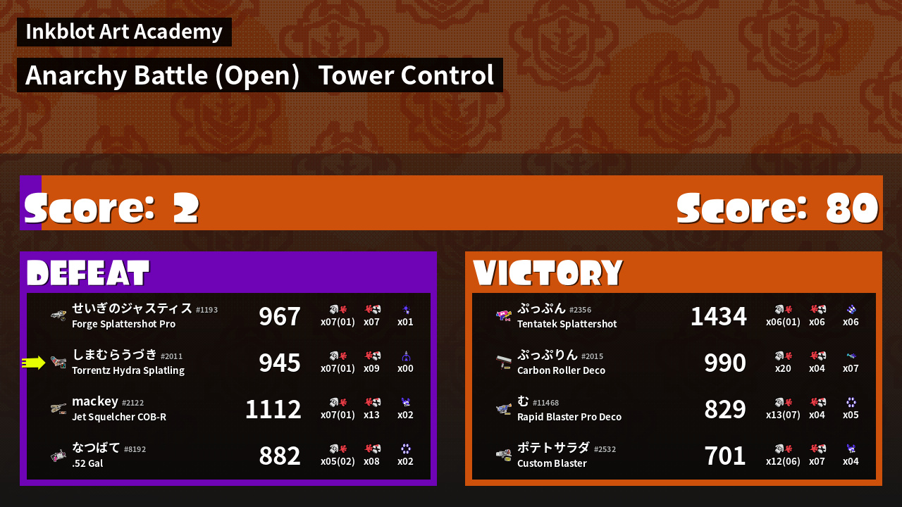 | Mode | Tower Control - Anarchy Battle (Open) |