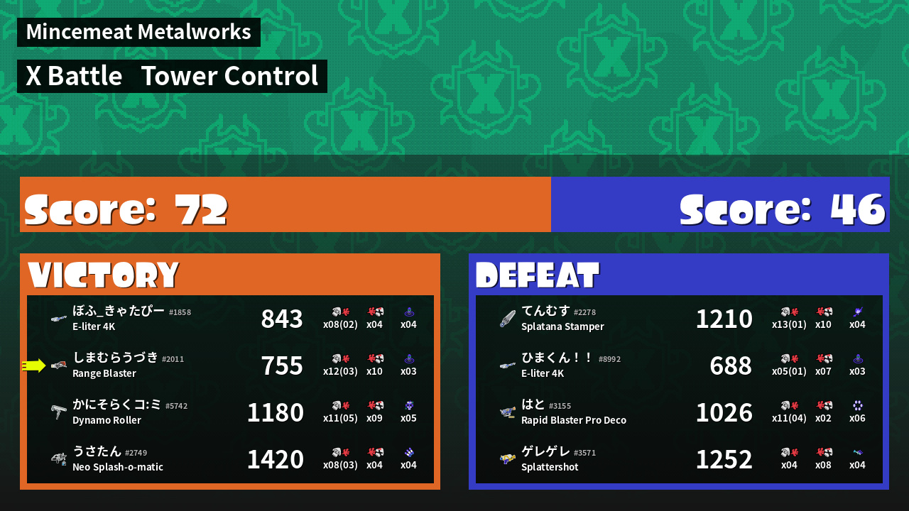 | Mode | Tower Control - X Battle | ||