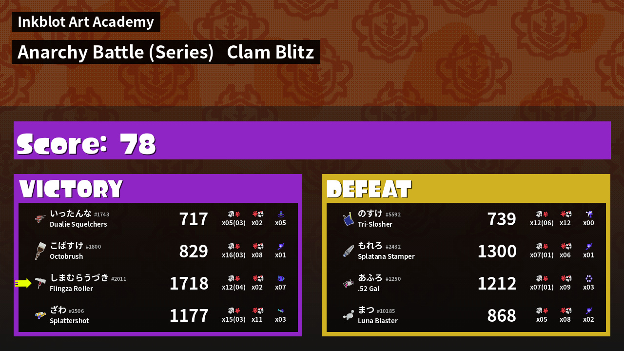 Name | Weapon | Inked | ![]() |