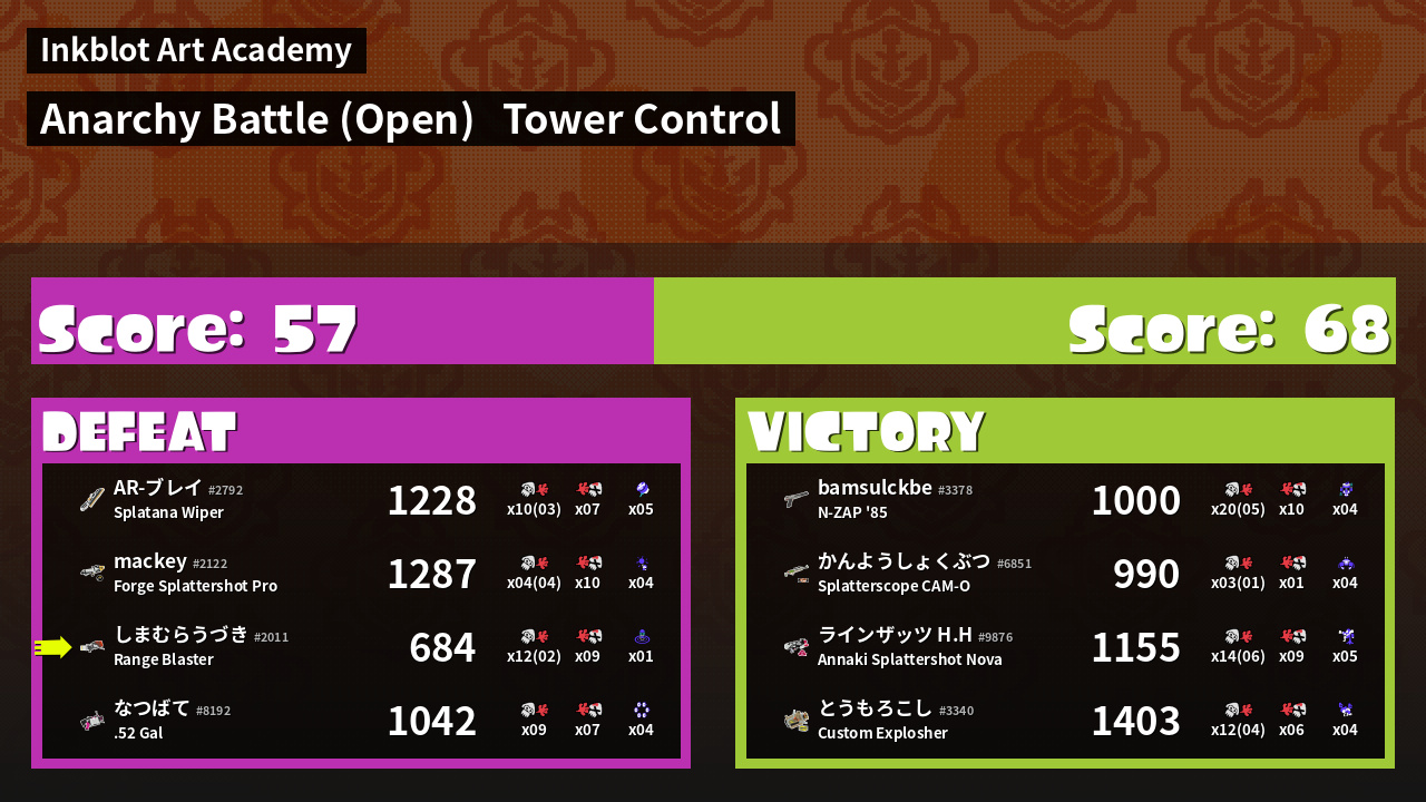 | Mode | Tower Control - Anarchy Battle (Open) |