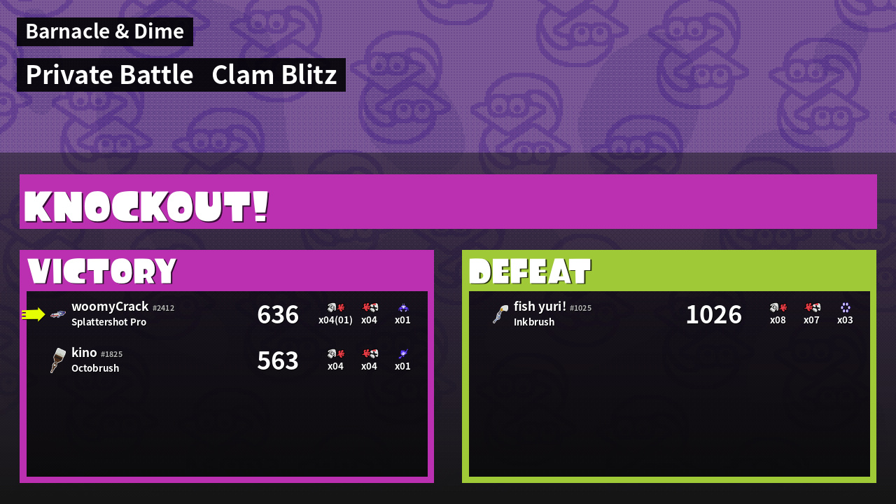| Weapon | Splattershot Pro ( Angle Shooter / Crab Tank) | ||