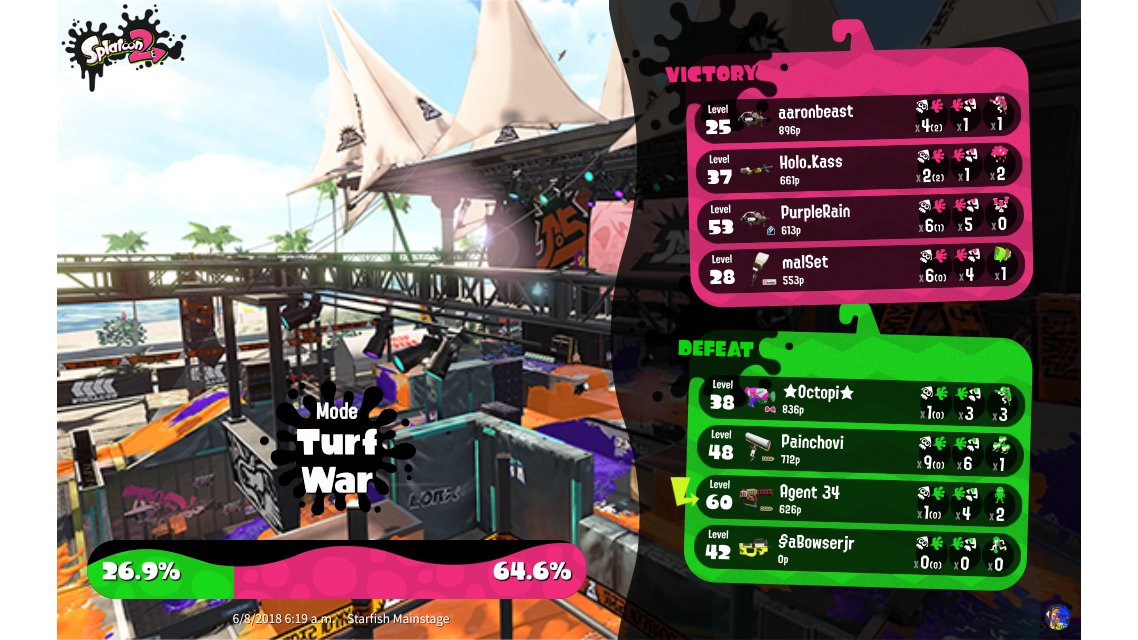 | Mode | Turf War - Regular Battle | |||||||||||||||||||||||||||||||