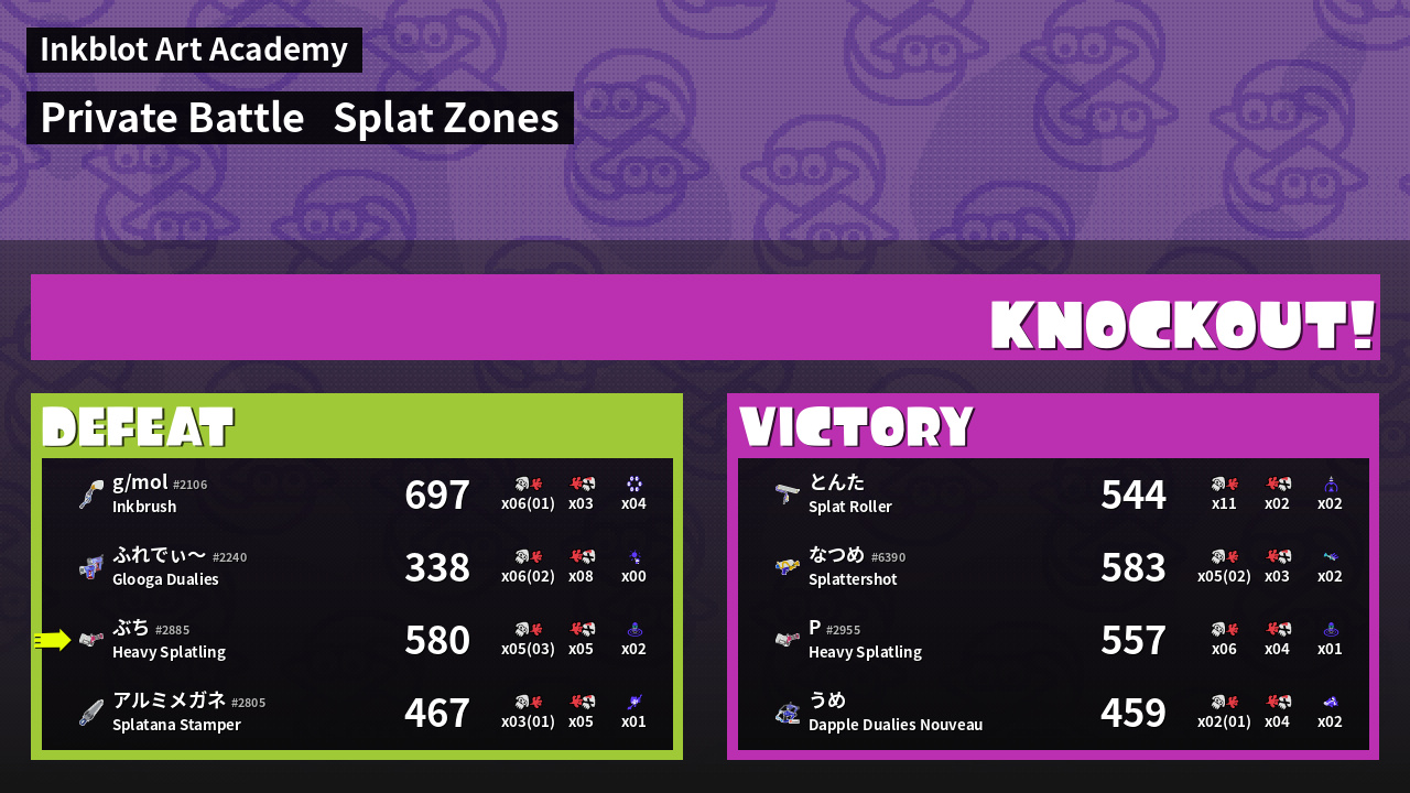 | Mode | Splat Zones - Private Battle | ||