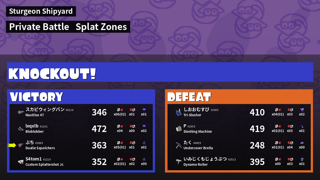 | Mode | Splat Zones - Private Battle | ||
