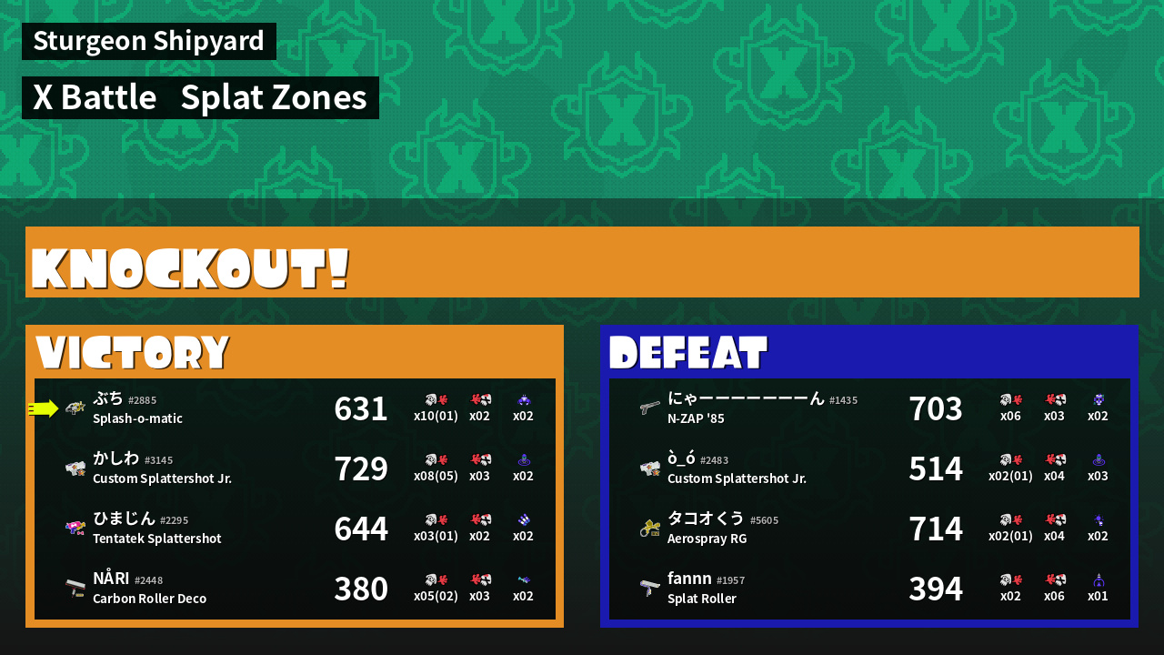 | Medals | #1 Overall Splatter #1 Splat Zone Guard #1 Popular Target | ||