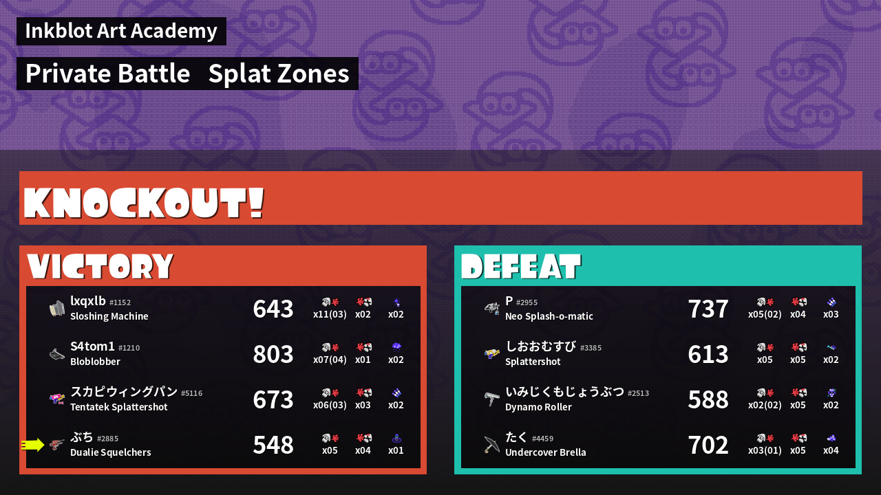 | Mode | Splat Zones - Private Battle | ||