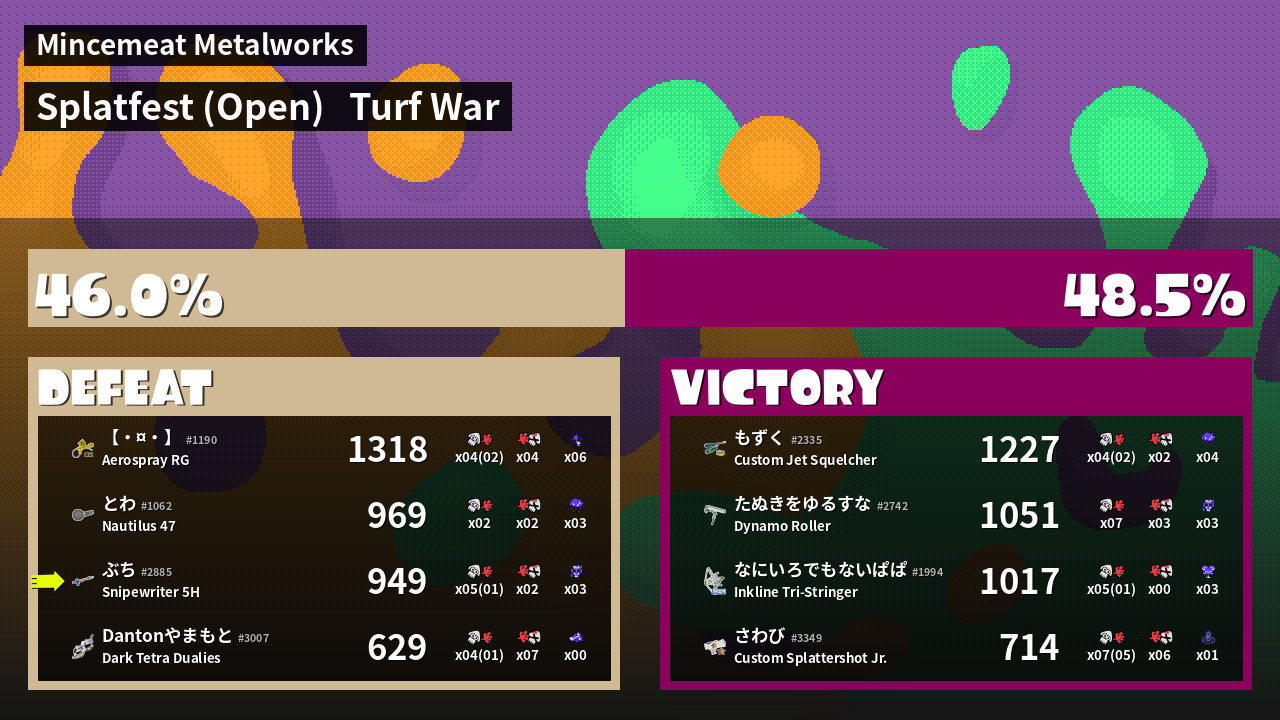 | Medals | #1 Overall Splatter #1 Enemy Splatter #1 Ink Consumer | ||
