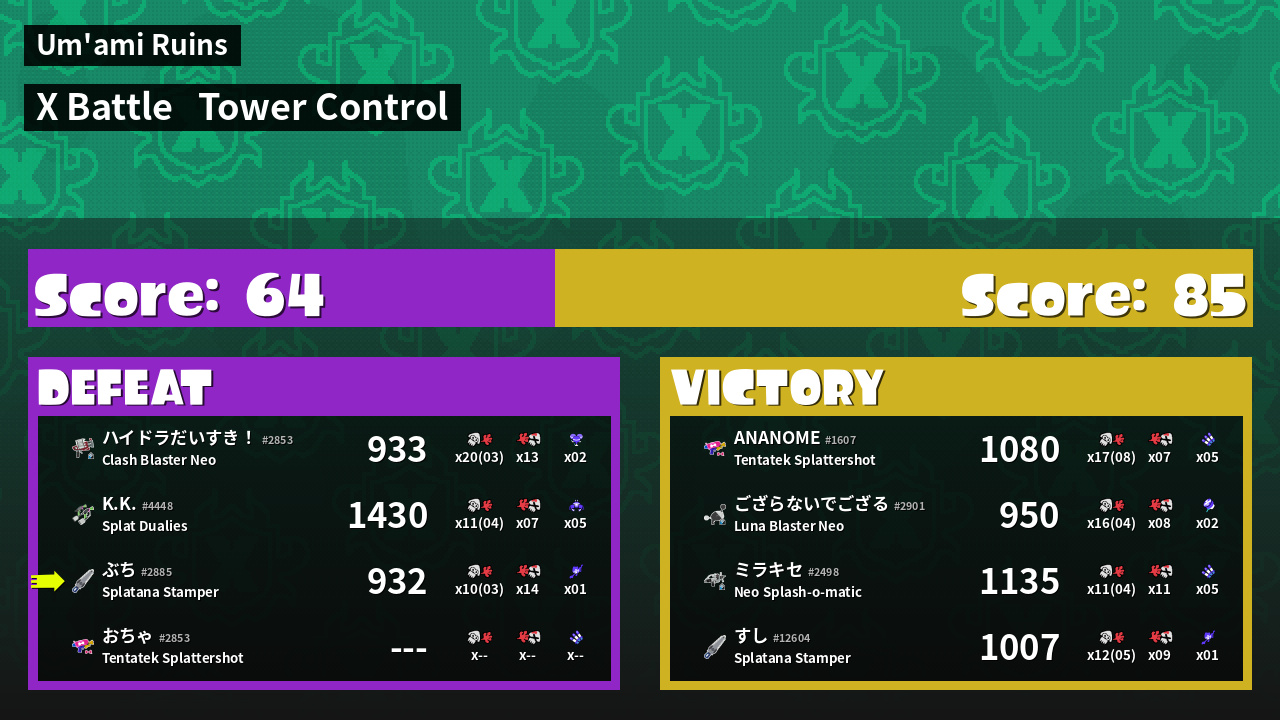 | Weapon | Splatana Stamper ( Burst Bomb / Zipcaster) | ||