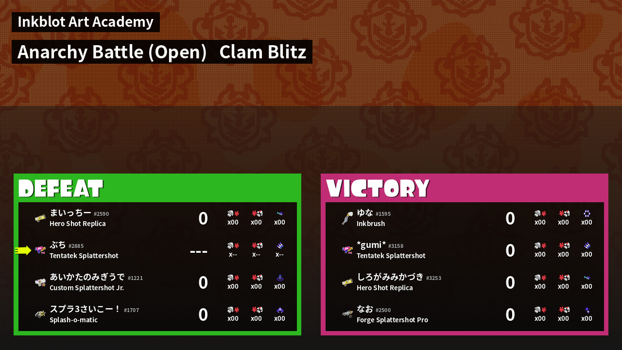 | Mode | Clam Blitz - Anarchy Battle (Open) | ||