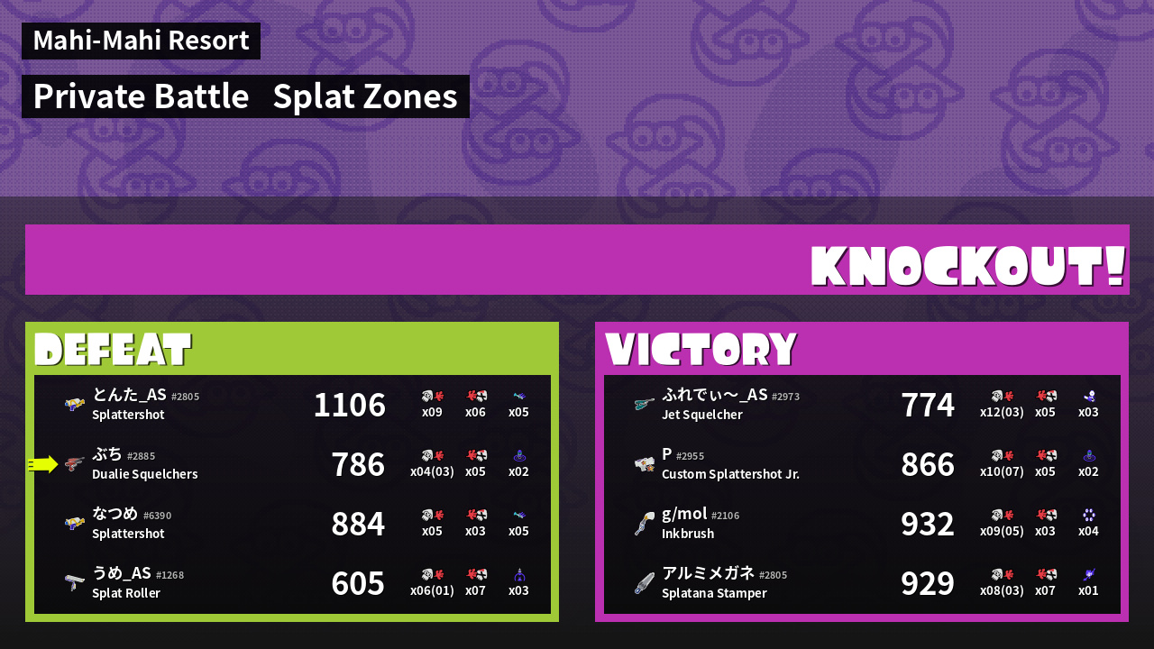 | Medals | #1 Popular Target #1 Splat Assister #1 Damage Taker | ||