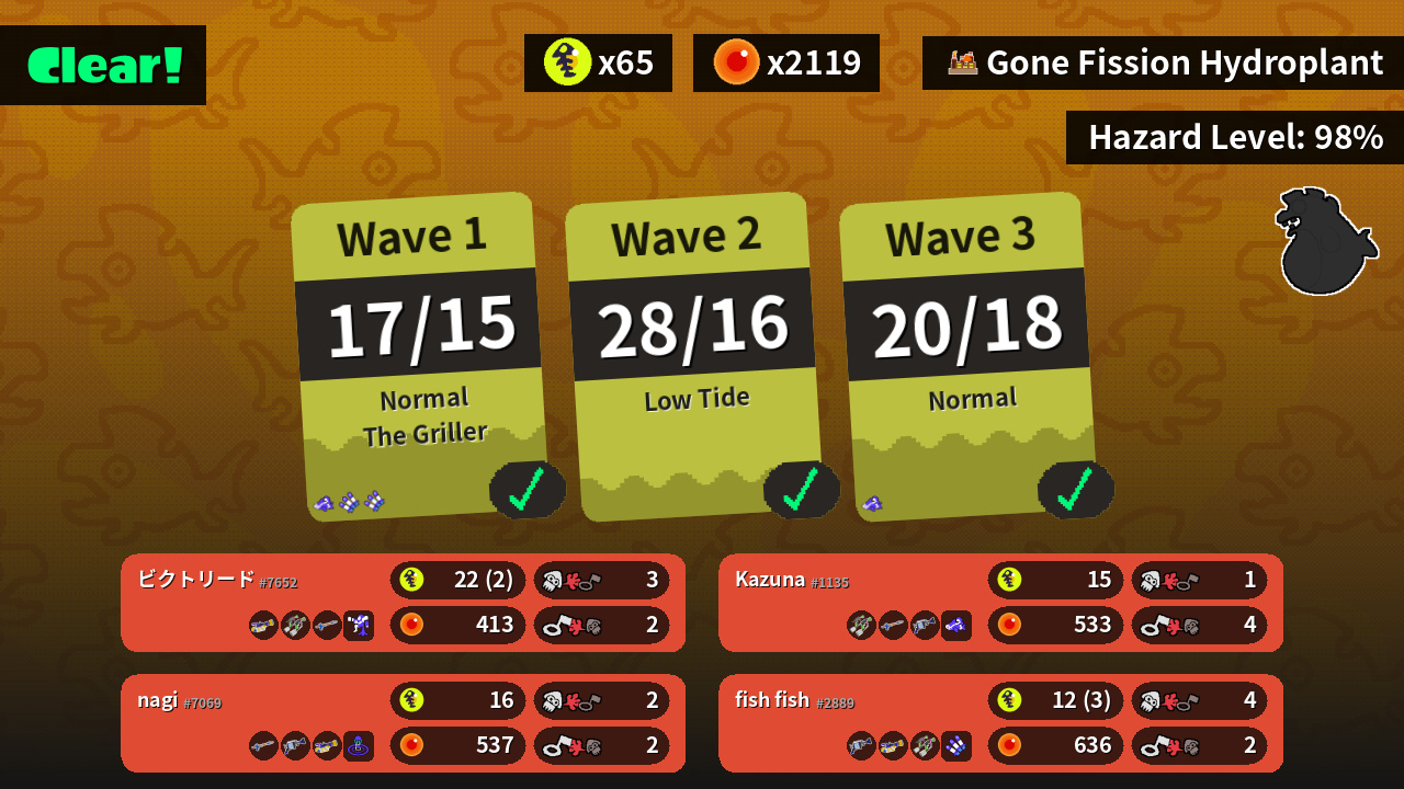 | Weapons | Mini Splatling Splat Dualies Snipewriter 5H | Snipewriter 5H H-3 Nozzlenose Mini Splatling | Splat Dualies Snipewriter 5H H-3 Nozzlenose | H-3 Nozzlenose Mini Splatling Splat Dualies |