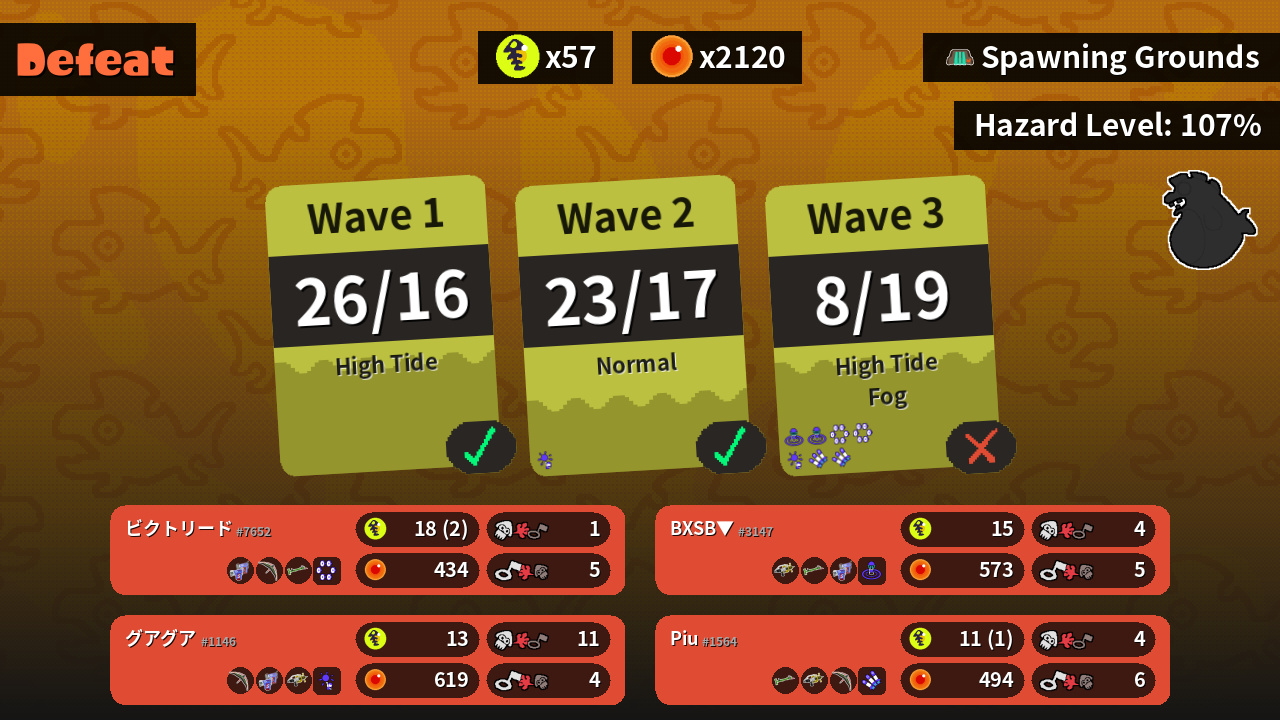 | Weapons | Glooga Dualies Tenta Brella Bamboozler 14 Mk I | Splash-o-matic Bamboozler 14 Mk I Glooga Dualies | Tenta Brella Glooga Dualies Splash-o-matic | Bamboozler 14 Mk I Splash-o-matic Tenta Brella |