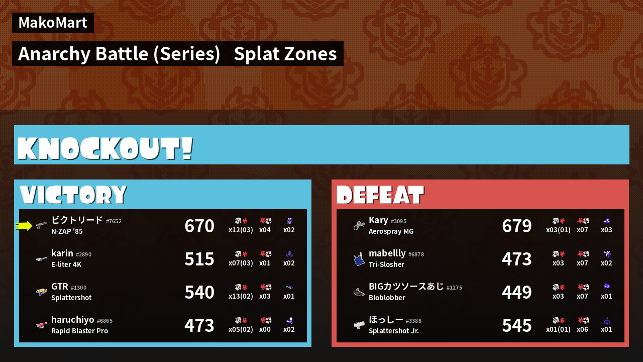 | Mode | Splat Zones - Anarchy Battle (Series) | ||