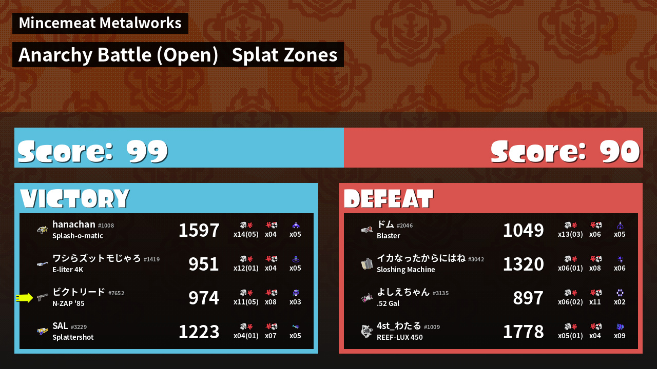 | Mode | Splat Zones - Anarchy Battle (Open) | ||