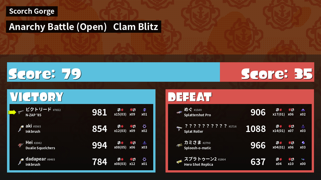 | Mode | Clam Blitz - Anarchy Battle (Open) | ||