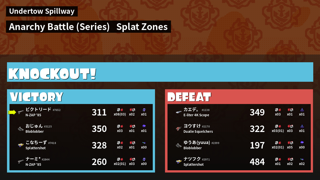 | Medals | #1 Overall Splatter #1 Splat Zone Guard #1 Enemy Splatter | ||