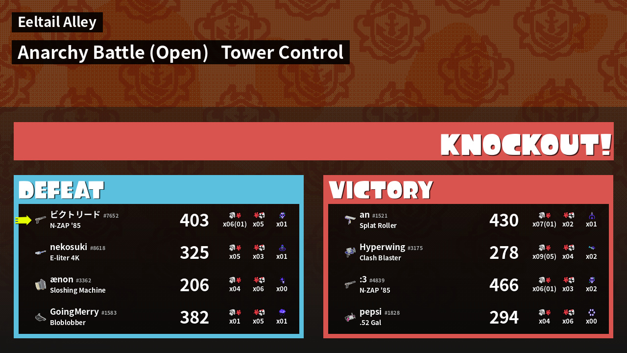 | Mode | Tower Control - Anarchy Battle (Open) | ||