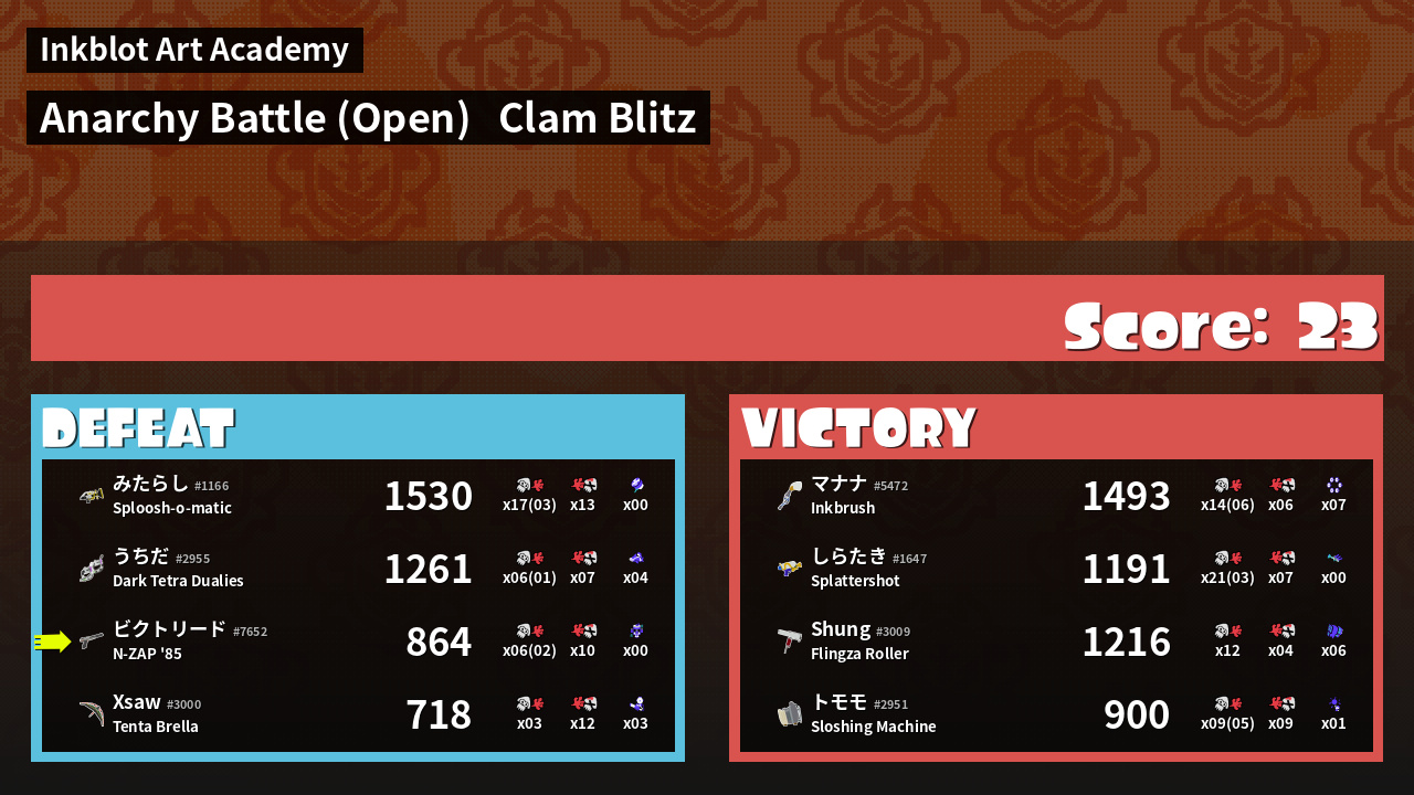 | Mode | Clam Blitz - Anarchy Battle (Open) | ||