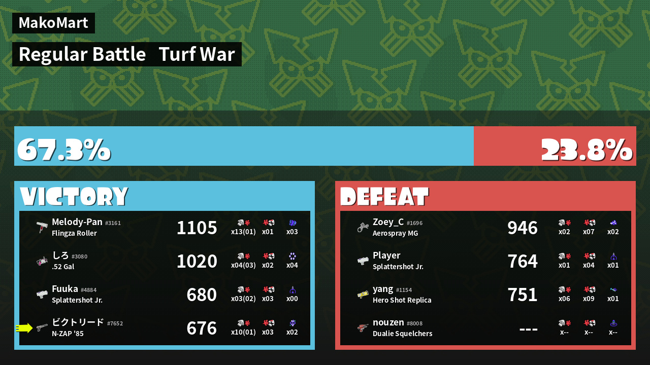 | Mode | Turf War - Regular Battle | ||