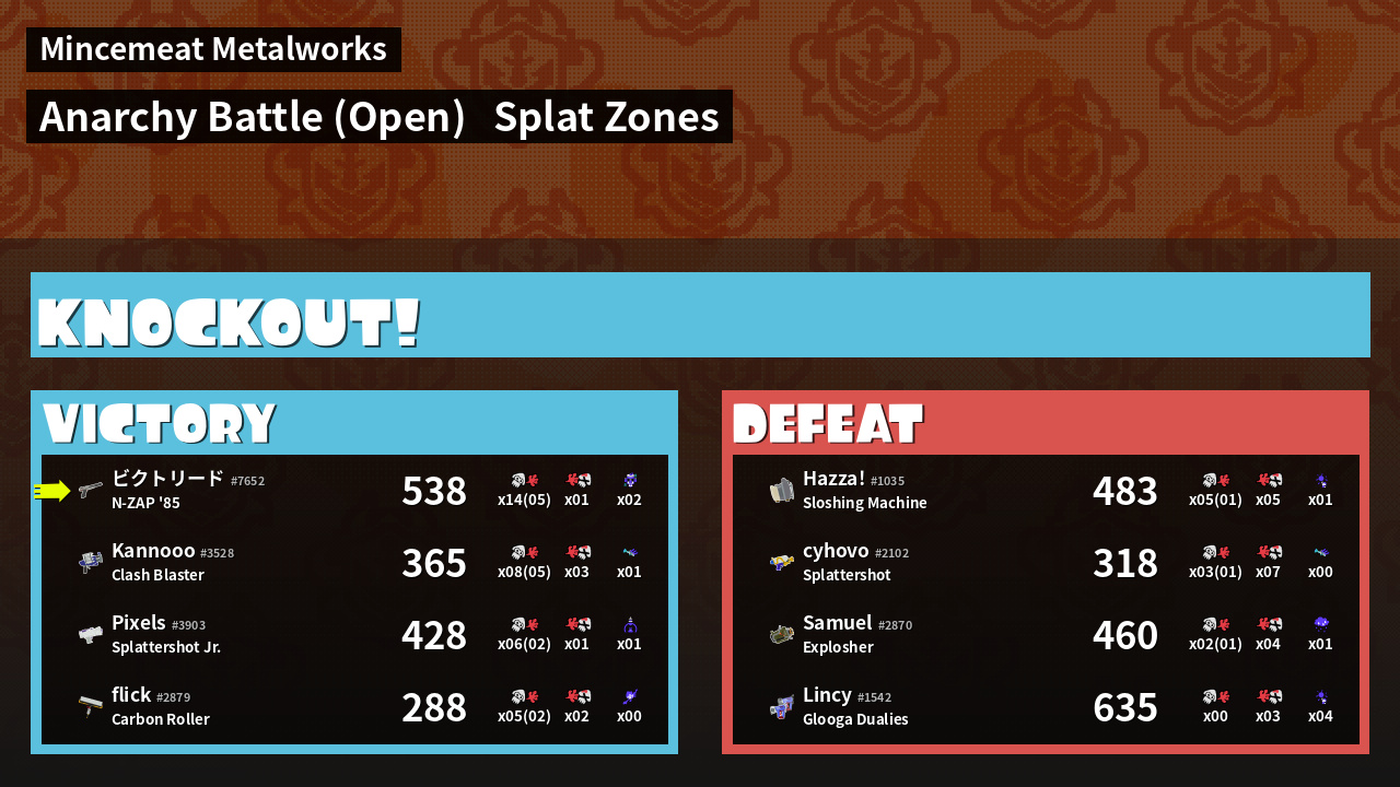 | Mode | Splat Zones - Anarchy Battle (Open) | ||