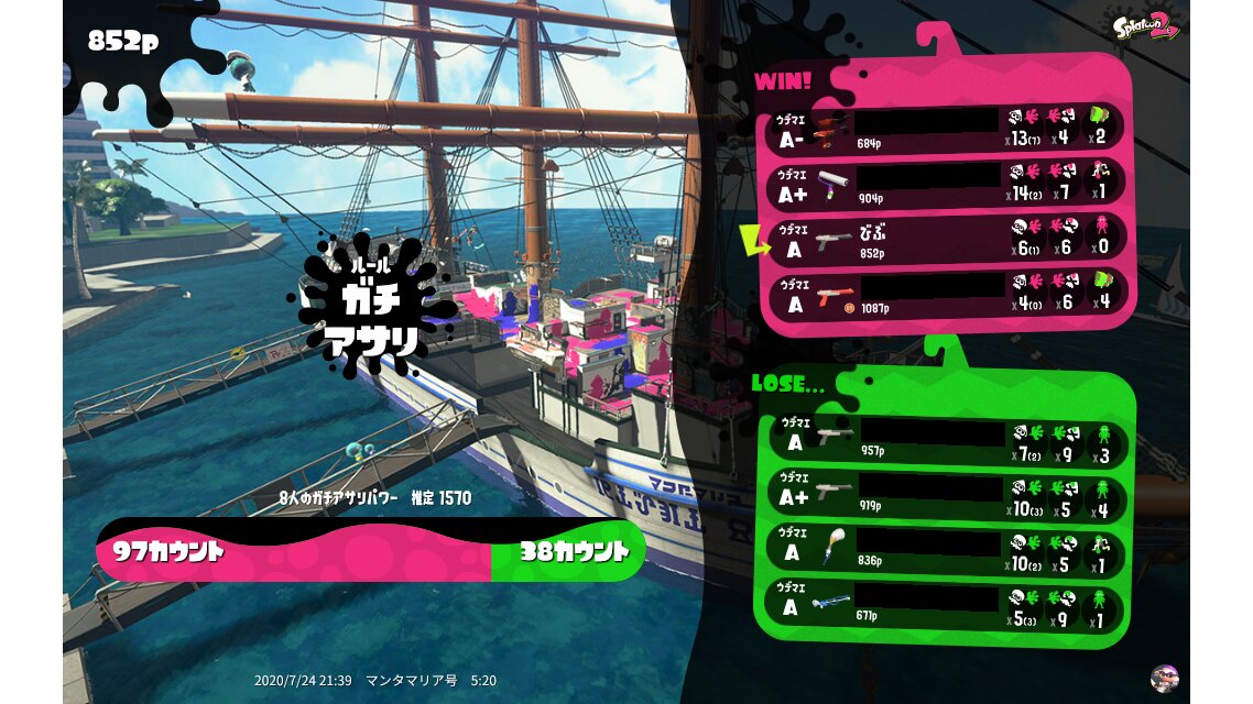 | Name | Weapon | Level | Rank | Inked | k+a/sp | k/d |