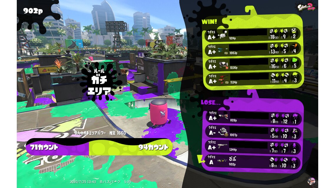 | Mode | Splat Zones - Ranked Battle | ||||||||||||||||||||||||||||||||||