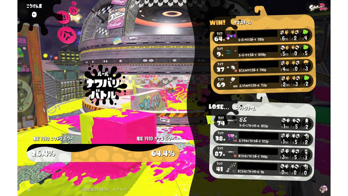 | Their team's splatfest power | 1,910 | |||||||||||||||||||||||||||||||||||||