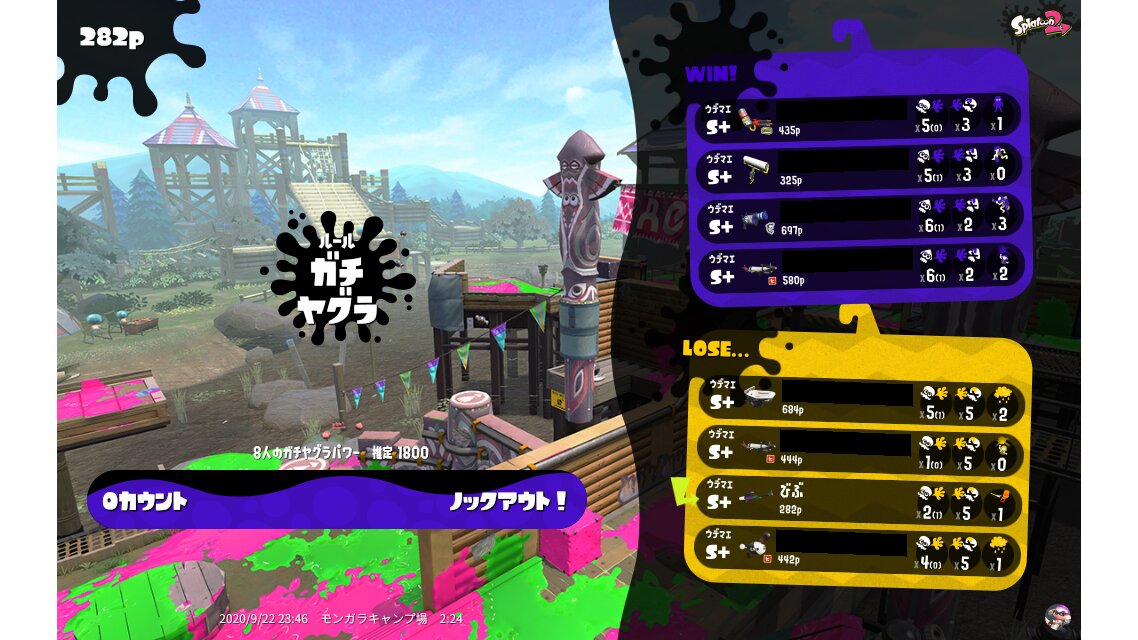 | Name | Weapon | Level | Rank | Inked | k+a/sp | k/d |