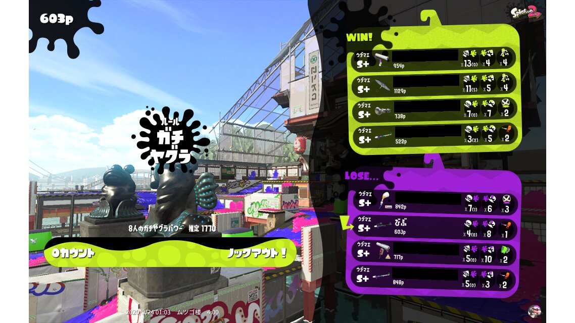 | Name | Weapon | Level | Rank | Inked | k+a/sp | k/d |