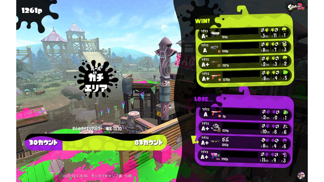| Mode | Splat Zones - Ranked Battle | ||||||||||||||||||||||||||||||||||||||||
