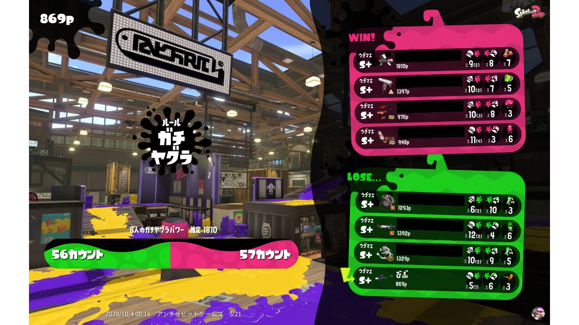 | SplatNet Battle # | 3,309 | ||||||||||||||||||||||||||||||||||