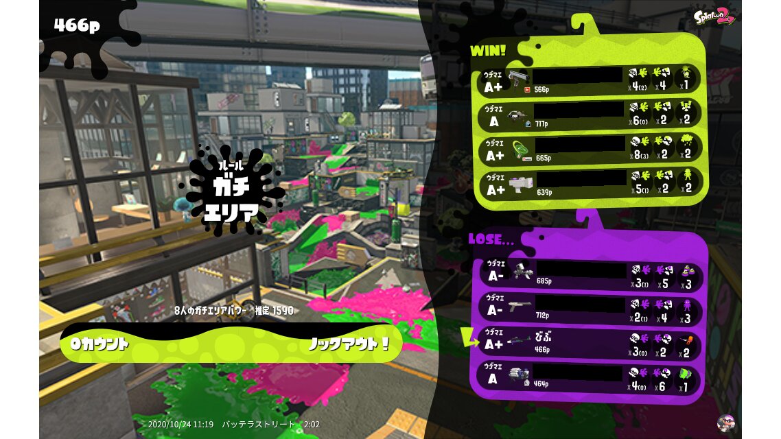| Mode | Splat Zones - Ranked Battle | ||||||||||||||||||||||||||||||||||