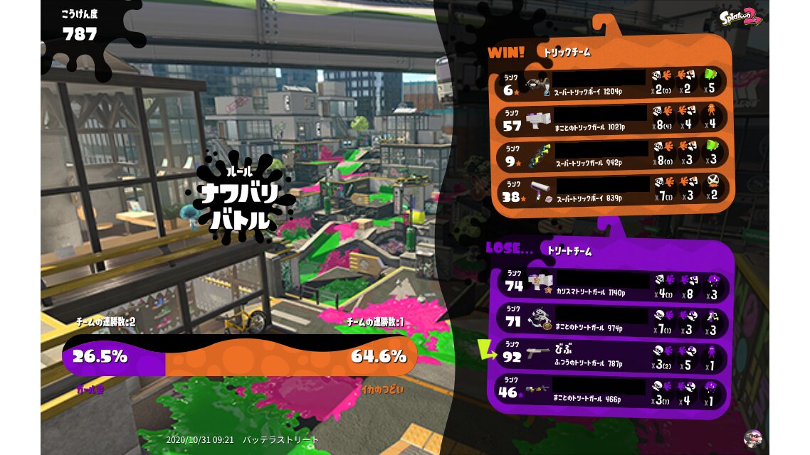| Team トリック イカのつどい Win Streak: 1 | 4,006 | 20 / 12 | 1.67 62.50% | ||||