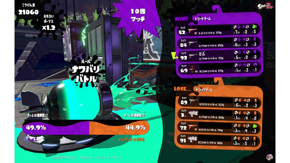 | Splatfest Title | トリート Fangirl 86 → トリート Fiend 94 | |||||||||||||||||||||||||