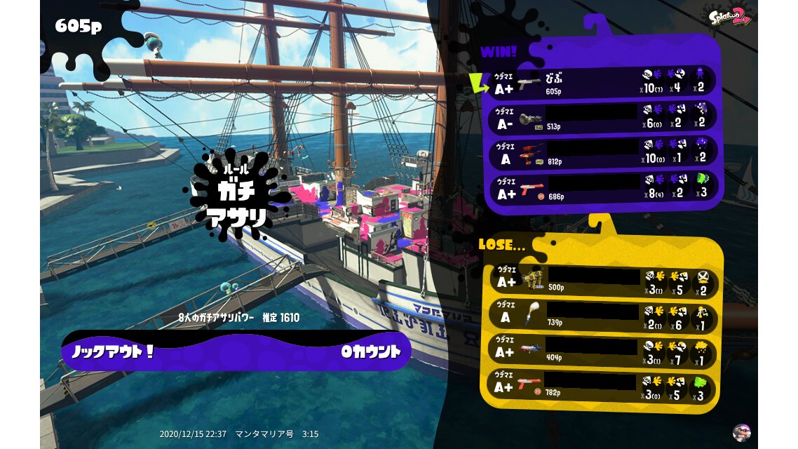| Name | Weapon | Level | Rank | Inked | k+a/sp | k/d |