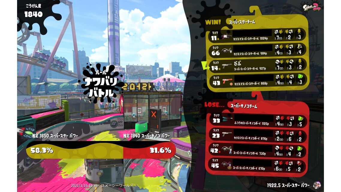 | Their team's splatfest power | 1,840 | |||||||||||||||||||||||||||||||||||||