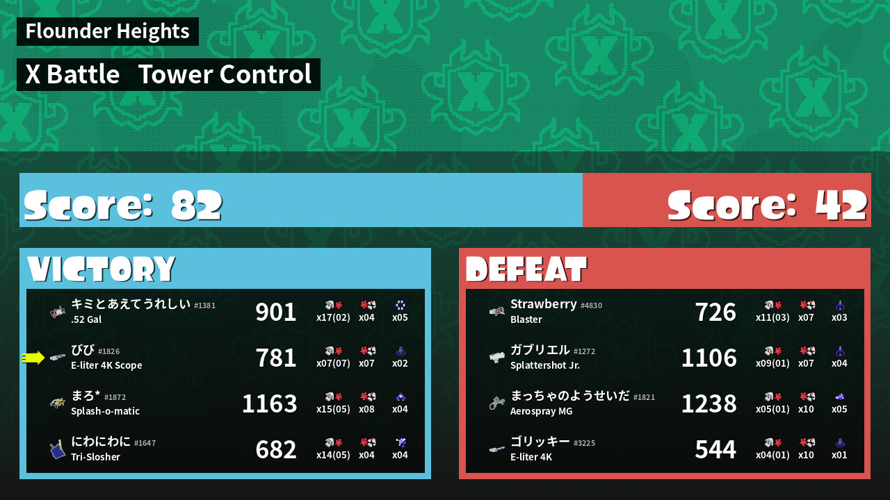 | Medals |  #1 Score Booster  #1 Super Jump Spot  #1 Splat Assister | ||