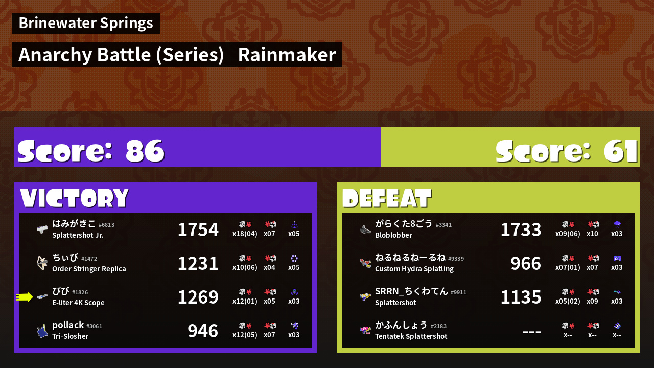 | Mode | Rainmaker - Anarchy Battle (Series) | ||