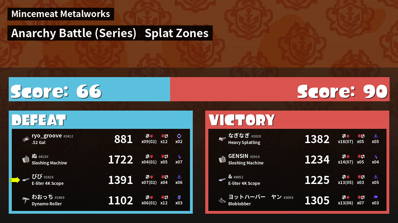 | Mode | Splat Zones - Anarchy Battle (Series) | ||