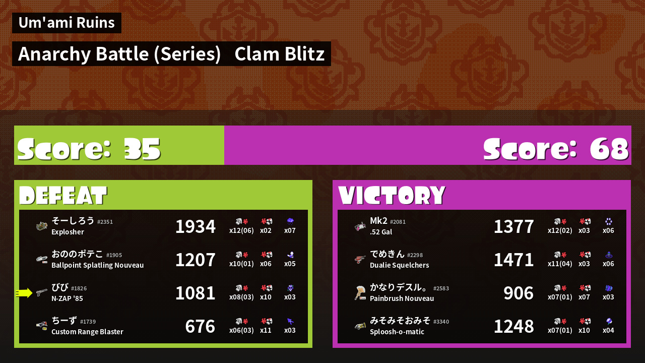 | Mode | Clam Blitz - Anarchy Battle (Series) | ||