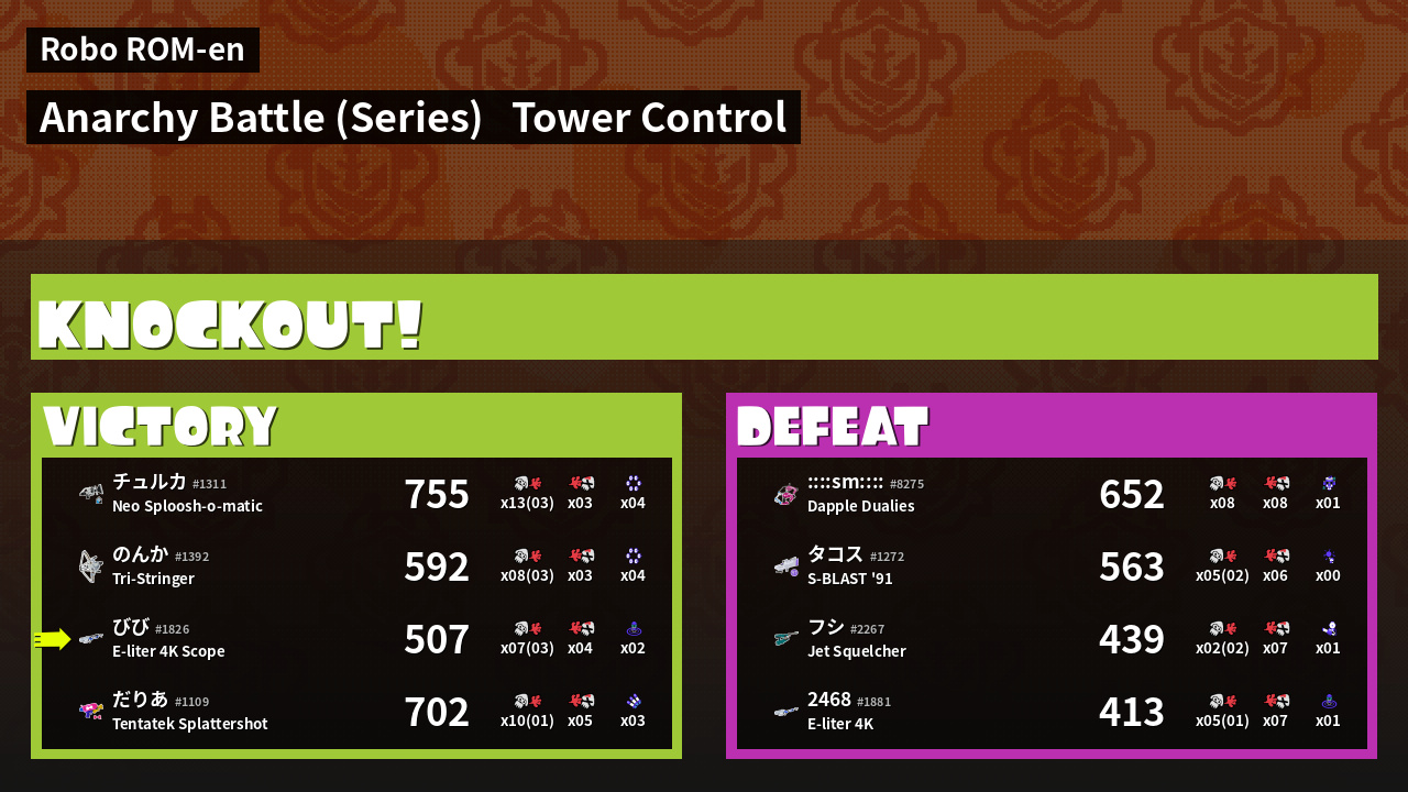 | Medals | #1 Score Booster #1 Splat Assister #1 Checkpoint Breaker | ||