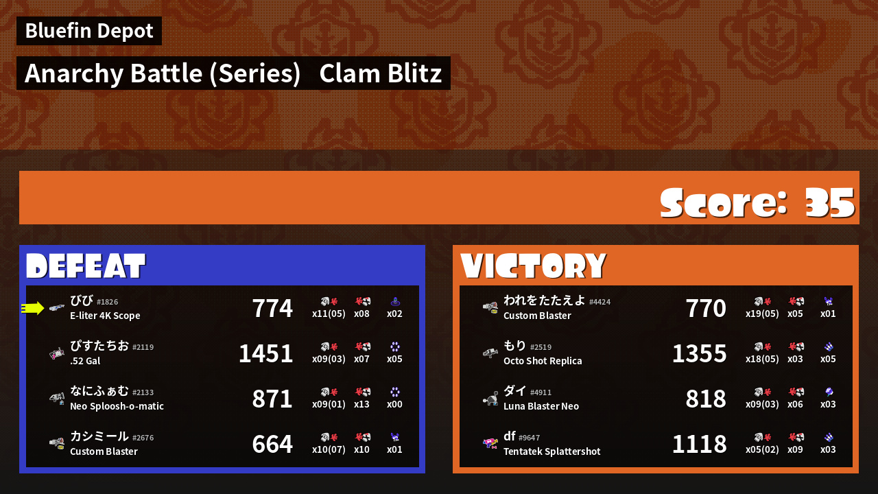 | Mode | Clam Blitz - Anarchy Battle (Series) | ||