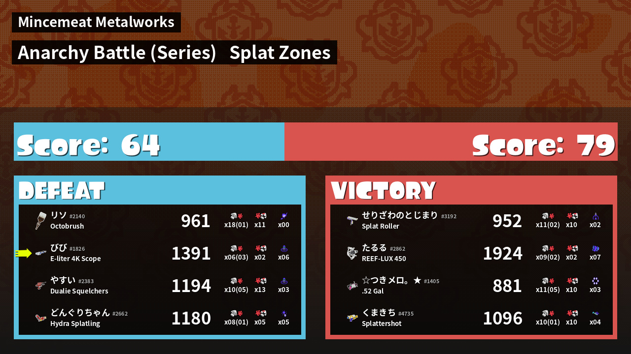 | Mode | Splat Zones - Anarchy Battle (Series) | ||