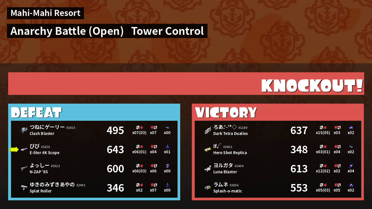 | Mode | Tower Control - Anarchy Battle (Open) | ||