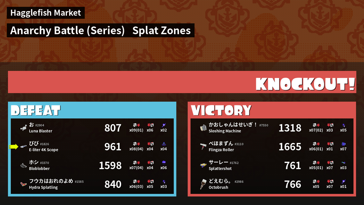 | Medals |  #1 Splat Zone Guard  #1 Popular Target  #1 Splat Assister | ||