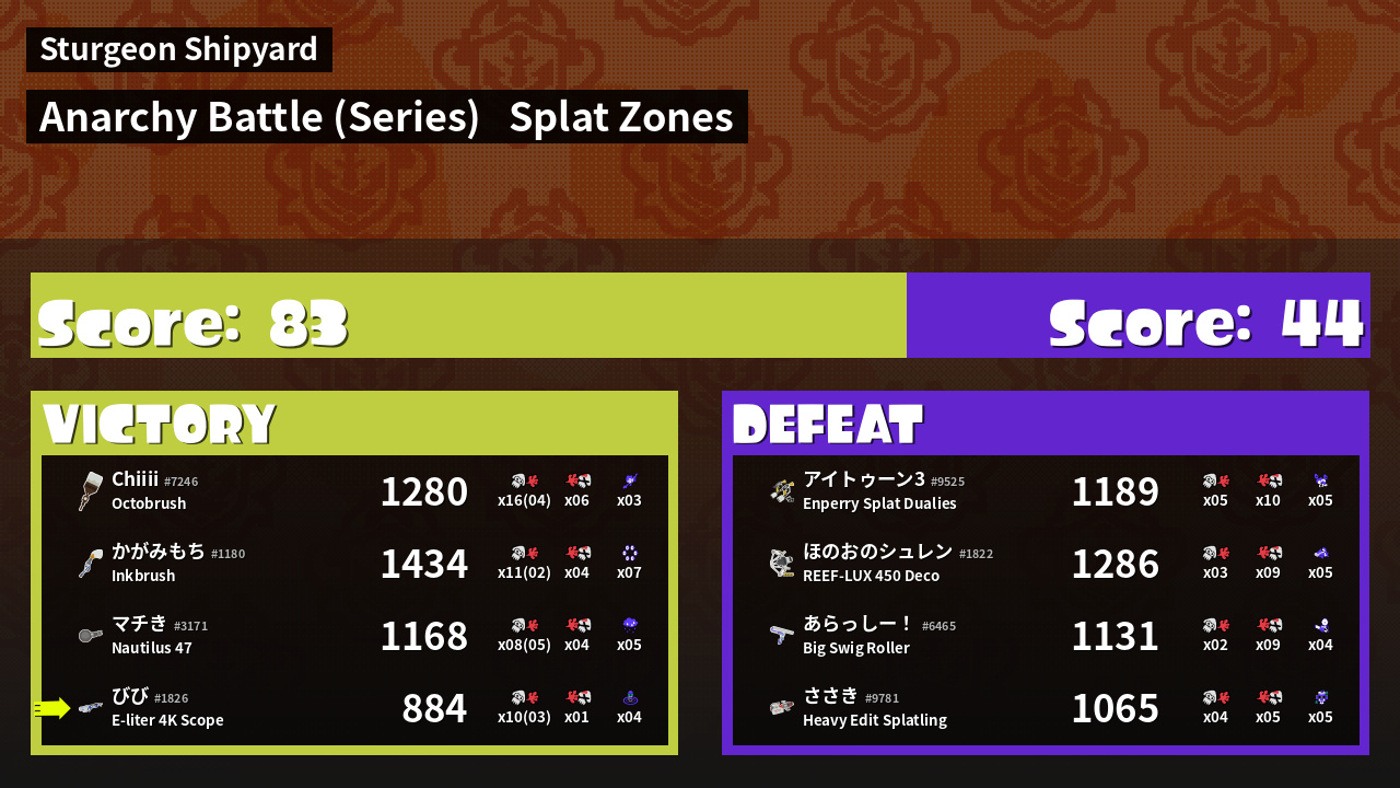 | Mode | Splat Zones - Anarchy Battle (Series) | ||